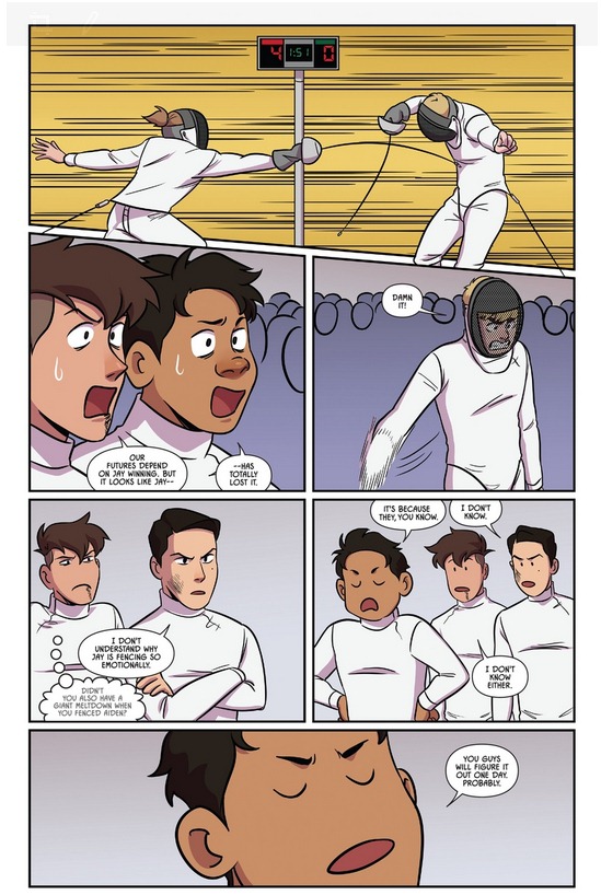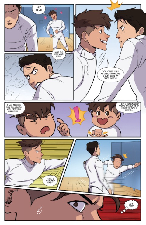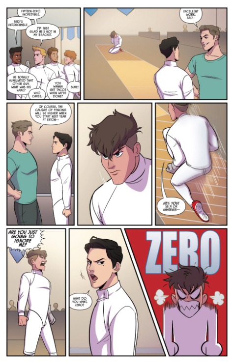 16岁的Nicholas赛场上遇见了少年组排名第二的天才击剑手泪痣男Seiji Katayama,被对方15-0横扫,落了一个“zero”的耻辱外号(╯‵□′)╯︵┻━┻