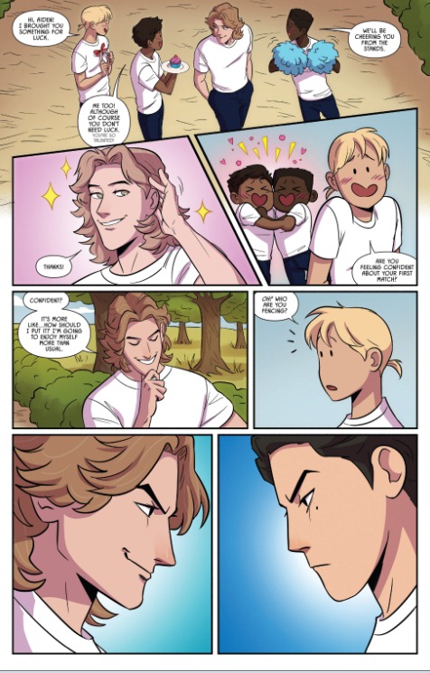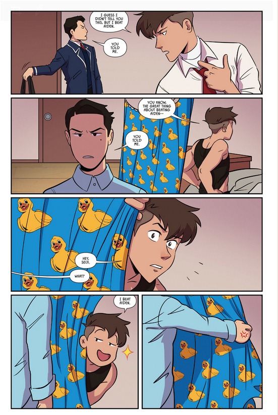 Aiden与Seiji交手,先发制人攻心为上,硬是让Seiji自乱阵脚爆了冷门。也揭露了Seiji舍弃击剑名校跑来Kings Row的真正原因:傲娇自尊心太强,不愿跟天选之子大魔王Jesse同校,毅然放下身段加入他校击剑队,目标就是以后打败他!